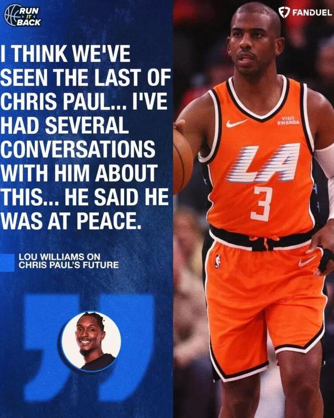 前NBA球員路威也說(shuō)了,保羅已打完生涯最后一戰(zhàn),他今夏休賽期選擇加盟快船就是因?yàn)榭梢耘惆榧彝ィ洳幌朐俅坞x開(kāi)洛杉磯。
