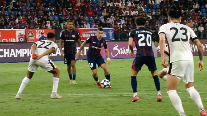 第24分鐘,柔佛新山定位球罰到禁區,對手連續嘗試射門,均被陳威神勇化解。第32分鐘,柔佛新山前場打出精妙配合,雅伊羅傳中,因薩勁射被陳威撲出!隨后角球中,貝格松凌空抽射,再次被陳威拒之門外。陳威神級的表現,令對手的進攻一次次無功而返。